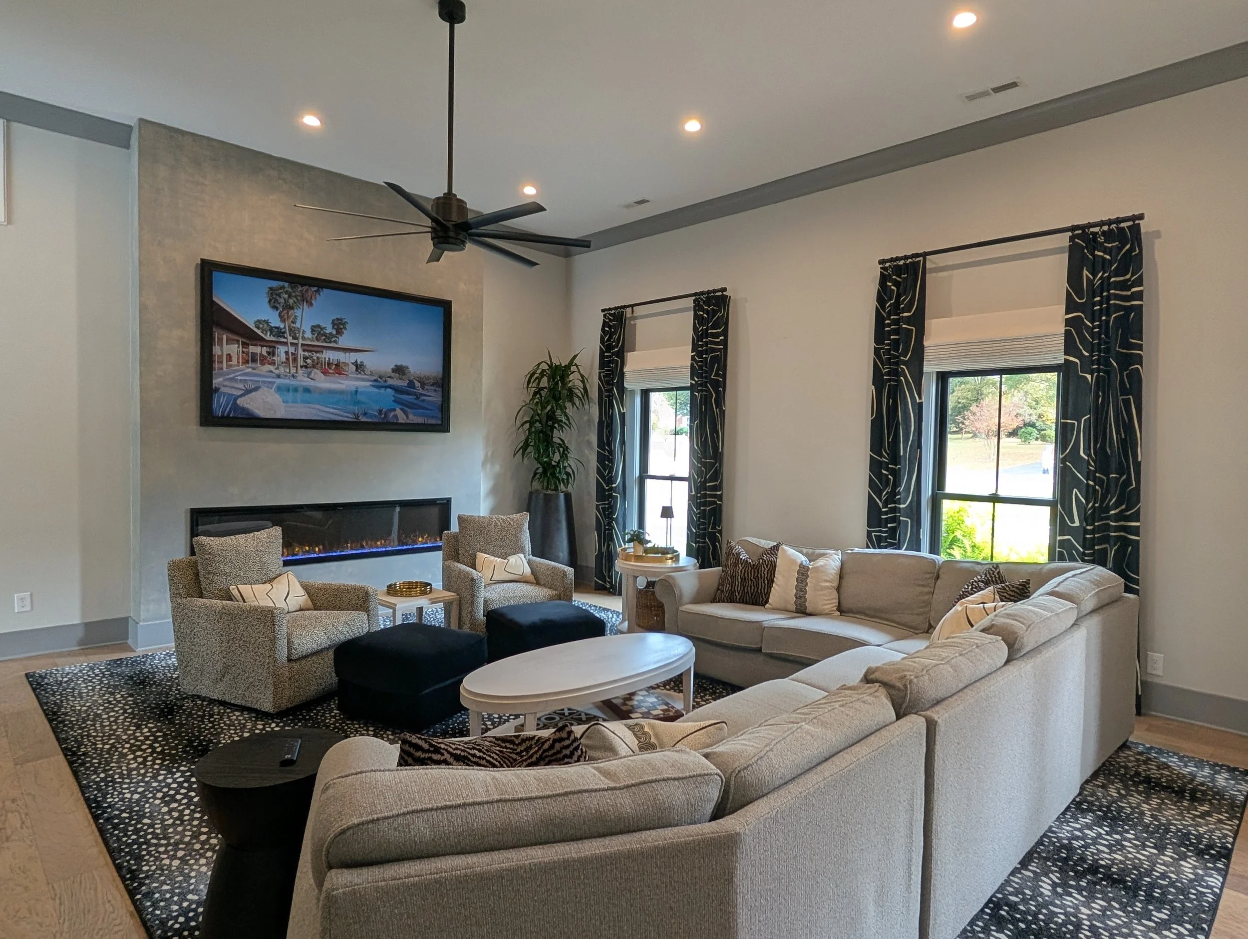 This gorgeous home was fully renovated and just needed finishing touches. We added wallpaper, more furniture, rugs, and decor to turn this beautiful space into a cozy family home that showcases just how fun neutrals can be!