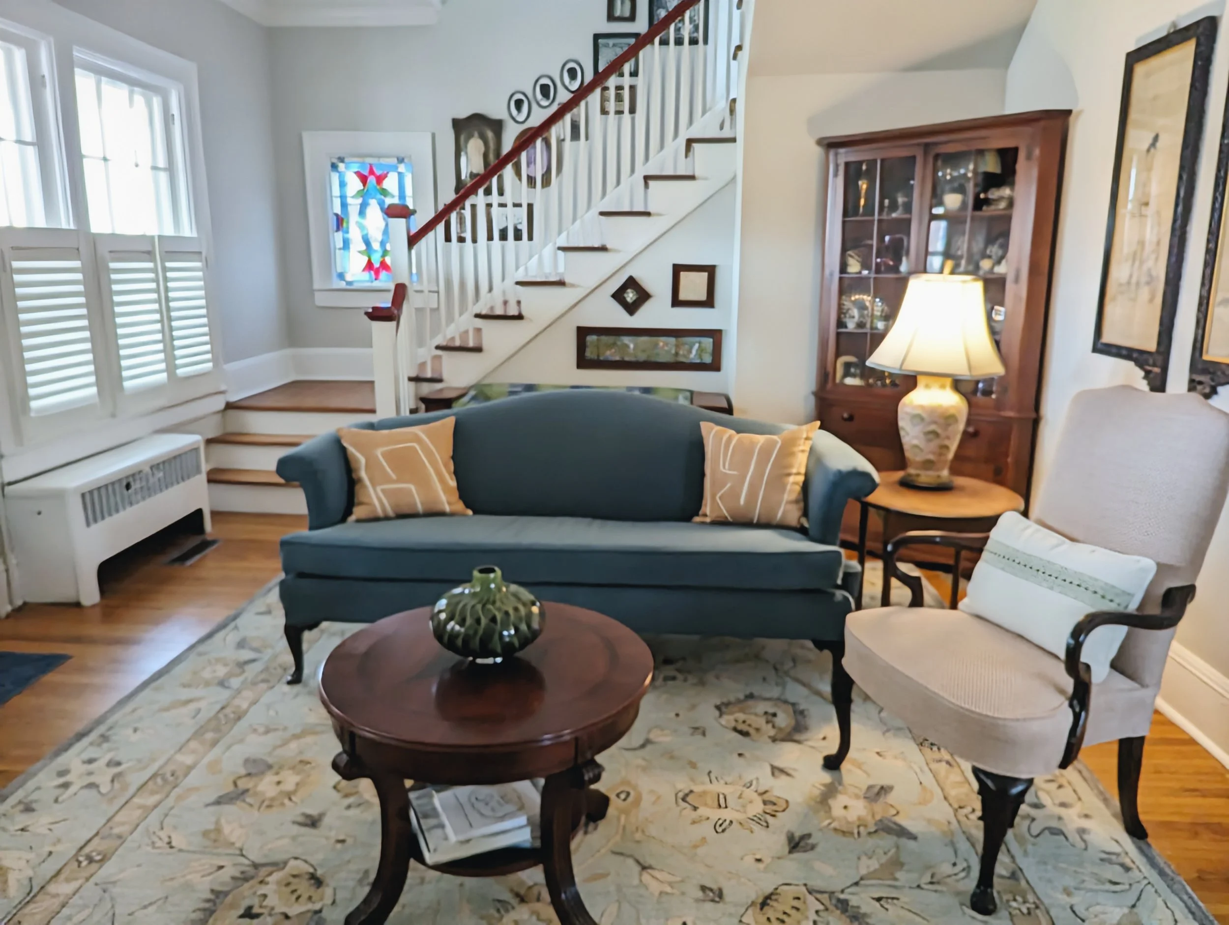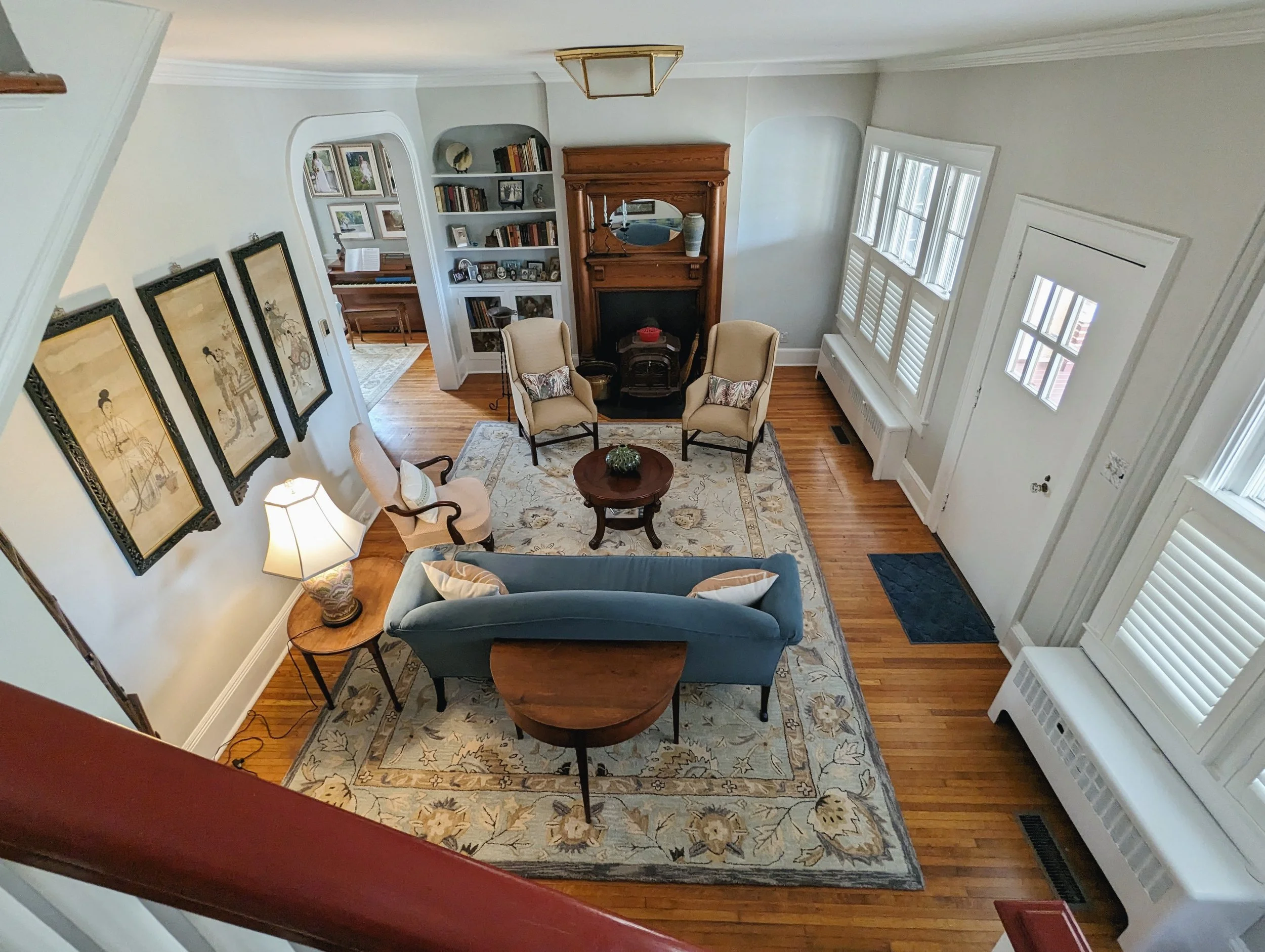 Such a fun quick project! This client brought me in for a formal living room refresh, with a punch list of other soft furnishing upgrades. We reupholstered everything, added pillows, tables, a rug and decor, and created a calming space to hang out at the end of the day. I love the modern fabrics in the historic home- it’s such a fun eclectic mix, and the art collection shines.